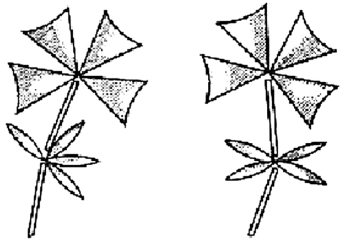 ,非常聪明。她用硬纸剪了两枝如图—16所示纸花,这两枝纸花的花瓣、叶、茎都是分开的。