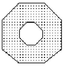 在一张厚纸上画出如图—20所示正八角形,并在此八角形的中心按图—20准确画出八角形孔。请你把此八角形剪成8个相等的三角形,并用这8个三角形拼成一朵有8瓣的花,而且花的蕊心也是正八角形。