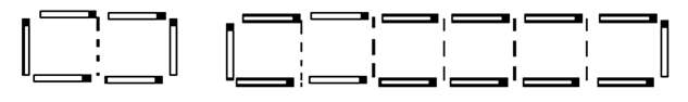 取出20根火柴摆成2个长方形,一个用6根火柴,另一个用14根火柴,如图—24。