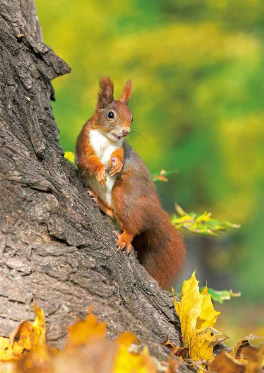 当路过松树林时,一只红松鼠看到小松鸡们像小绒球似的,就打起了坏主意。“今天运气太好了,可以加餐了!”红松鼠觉得松鸡妈妈不可能顾得上这么多的小松鸡,只要自己动作够轻够快,一定可以轻而易举地捉到一只小松鸡。或许在以前,这只红松鼠可以得逞,但是今天不一样了。红颈环早就发现了这只形迹可疑的松鼠,它时刻注意着松鼠的动静。