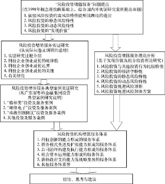 风险投资的增值服务,又称中介服务,俗称为投资管理。虽然此前还没有人就此概念进行深入考究,但站在金融经济价值的视角,称之为增值服务可能更为科学,贴近风险投资的金融学模式。风险投资增值服务的理论与实务问题,是笔者于1996—1998年在南开大学做第一站博士后,专题研究风险投资时提出的,后来在承担2003年度国家社会科学基金项目“中国高技术企业创业成长机制及其风险(创业)投资金融支持体系的研究”(项目批准号:03BJY045)的研究过程中,通过对全国1 000多家科技企业的问卷调查和200多家科技企业的实地调研,以及专门去美国和以色列的实地考察,深化了该命题需要研究的理论与实务内容。这些年来,在我们的研究过程中,贯穿了这个命题的内容。今天将研究的成果撰写出来,奉献给业界,为业界增添一些更为系统的理论与实务研究成果,并期望能够作为业界的理论指导和经验借鉴。