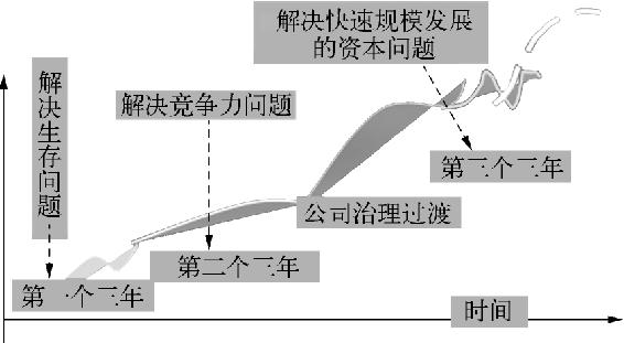 在本章第一节和第二节论述的基础上,将我国科技企业创业成长的“三个三年”周期规律性,以图2.1来表示。风险投资增值服务,以“三个三年”创业成长周期规律性为主线,以制约障碍创业成长的边界因素为解决方案内容,形成以市场盈利机制、创新能力机制、规模资本投资机制竞争力为核心的服务体系,风险投资的增值服务将有效地解决本节中论述的这些创业成长过程中的问题。