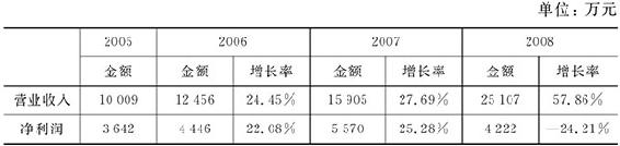 顺络电子近年营业收入保持高速增长势头,2008年同比增长率达57.86%。由于2008年的全球金融危机使电子类产业遭受严重影响,顺络电子第一次出现营业收入高速增长而净利润同比有所下降的情况。