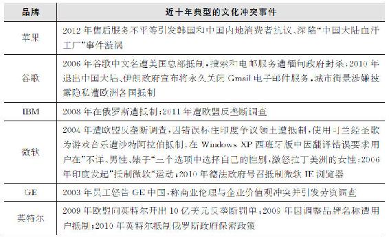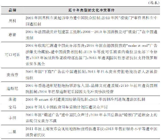 表1 样本品牌2003-2013年间遭遇的典型文化冲突事件