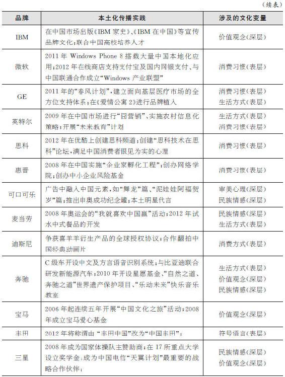 表2 近5年来样本品牌有代表性的本土化传播实践(以中国市场为例)