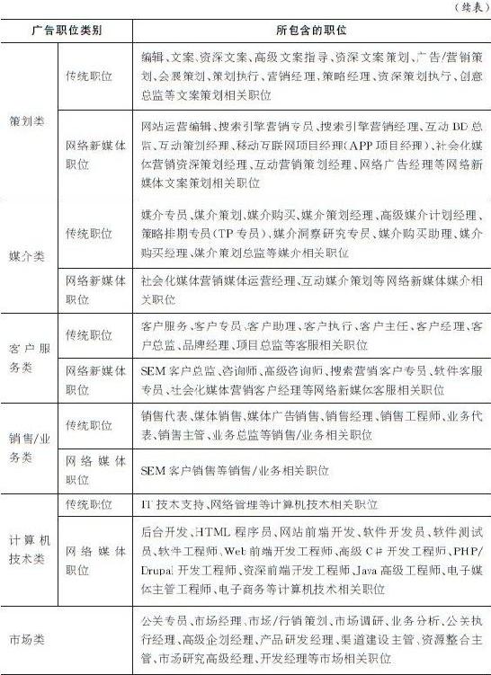 (二)广告企业5类核心职位人才需求量大,网络新媒体类的人才需求趋势明显