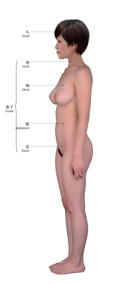 图4 女性全身体表(侧面观)Surface of the female body (lateral aspect)