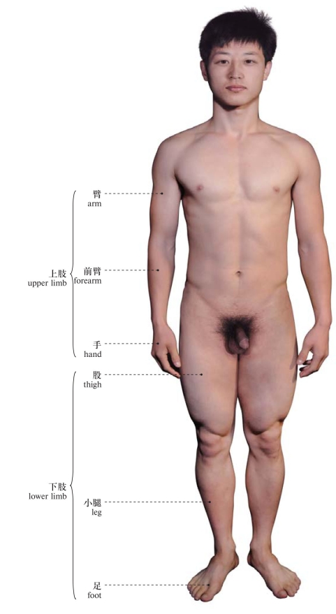 图1 男性全身体表(前面观)Surface of the male body (anterior aspect)