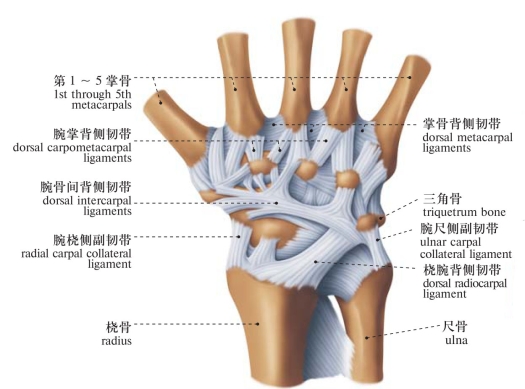 Topography of the ligaments of the carpal joint (dorsal aspect)