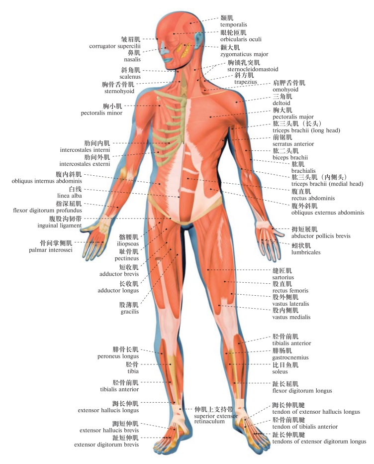图164 全身肌肉(前面观)Muscles of the body (anterior aspect)
