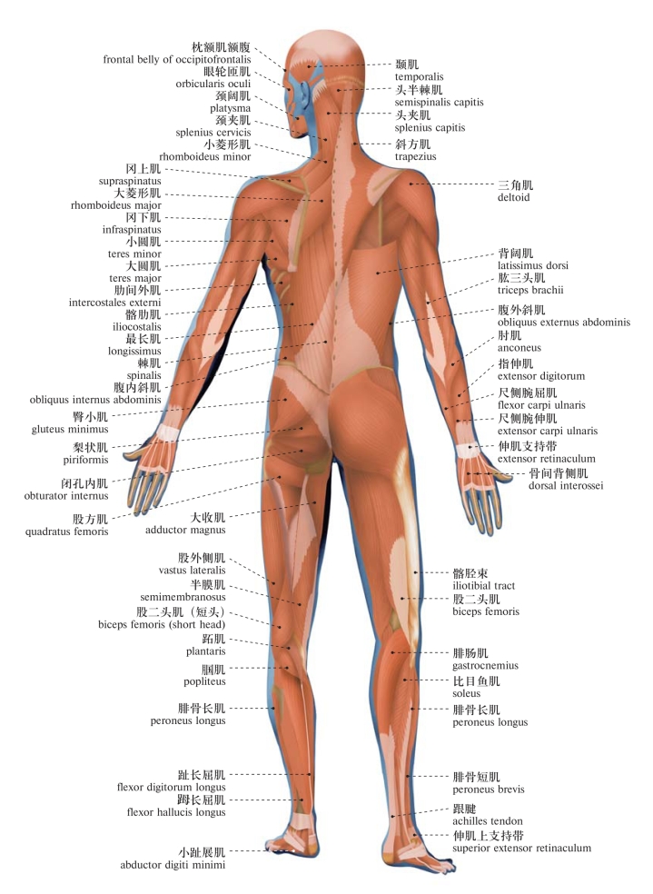 图165 全身肌肉(后面观)Muscles of the body (posterior aspect)