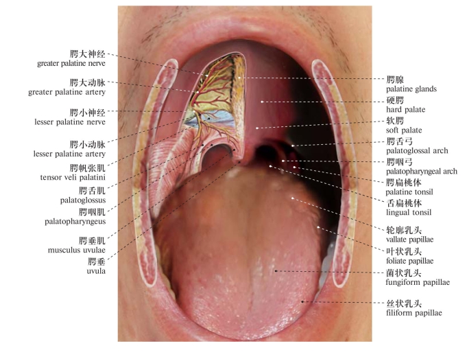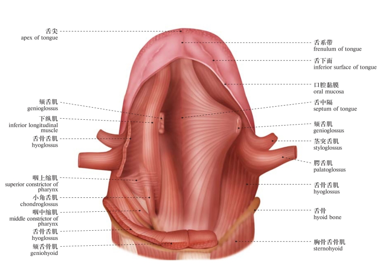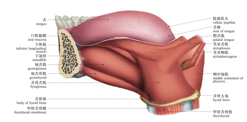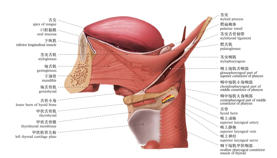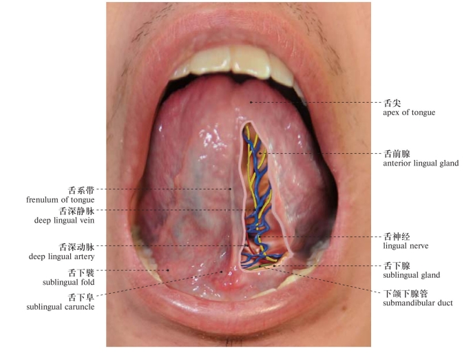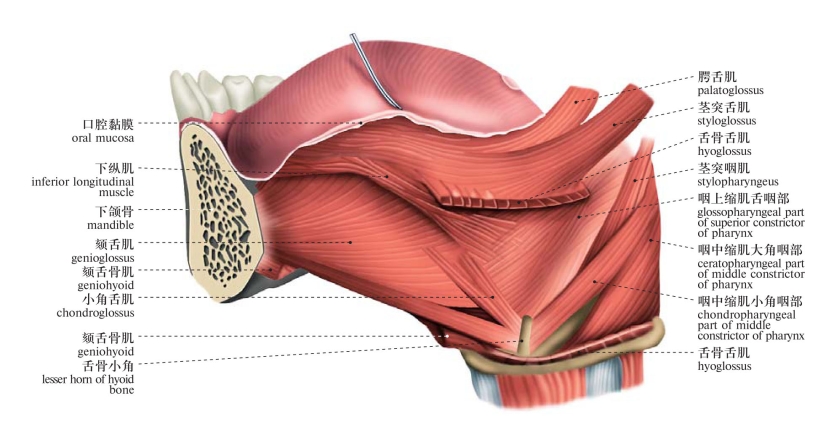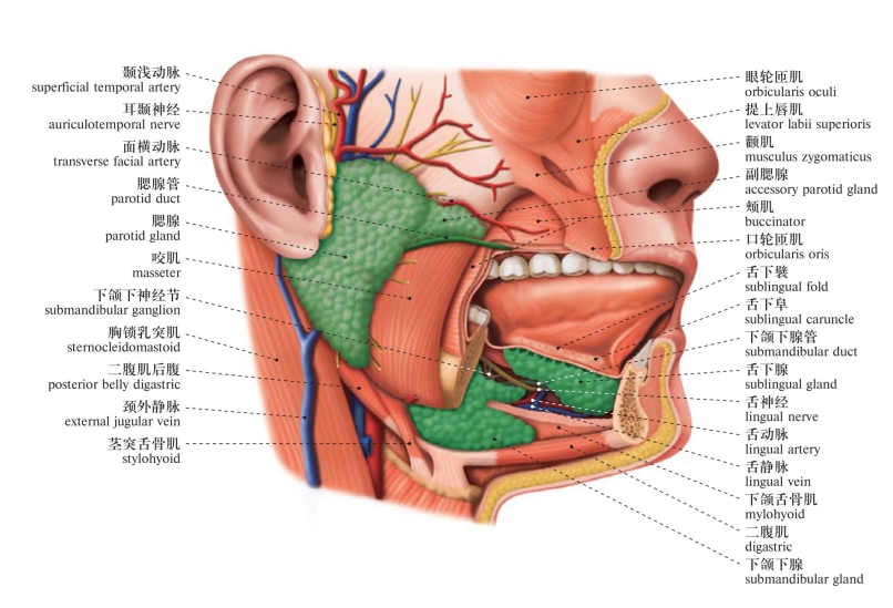 图263 腮腺、下颌下腺及舌下腺(外侧面观)