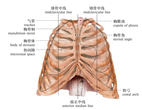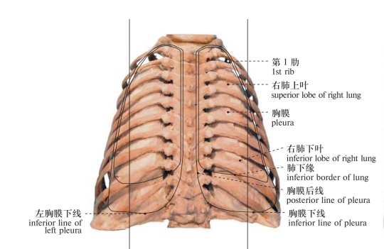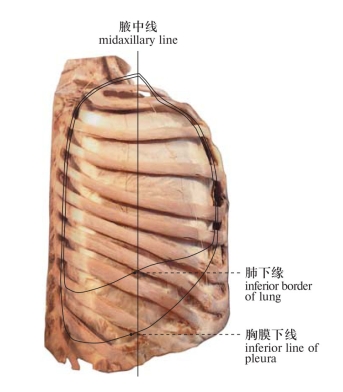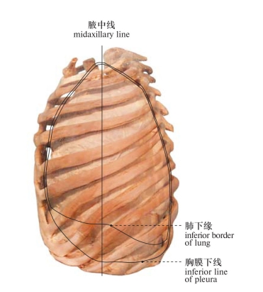 Body surface projection of the pleura and the lung (right lateral aspect)