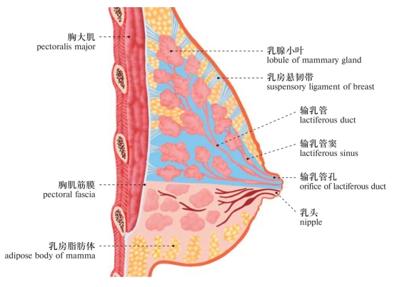 图363 乳房矢状切面(模式图)