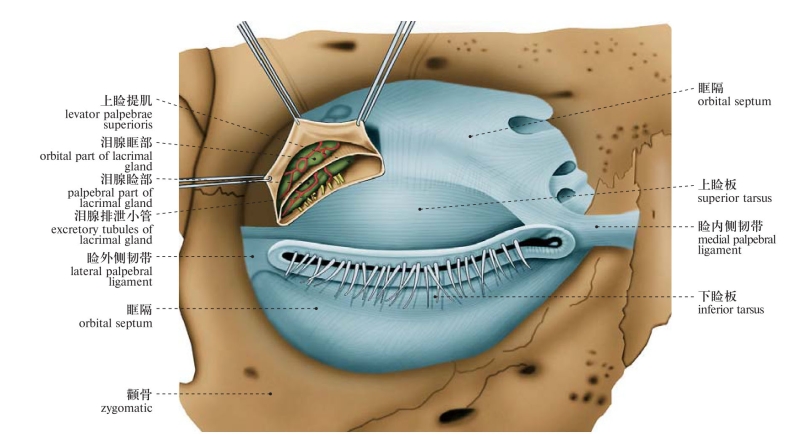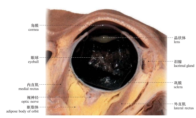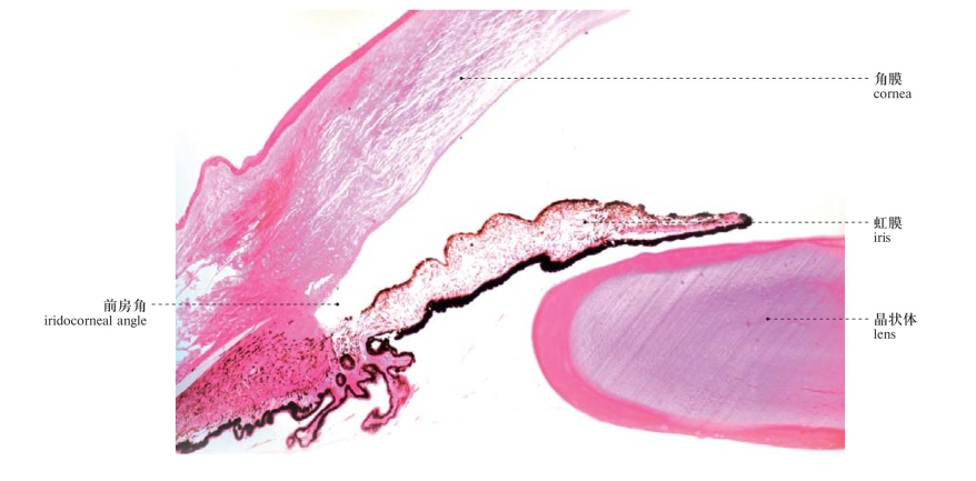 Anterior portion of the eyeball (human eyeball, HE staining, ×40)