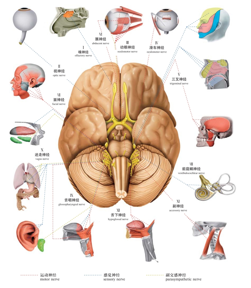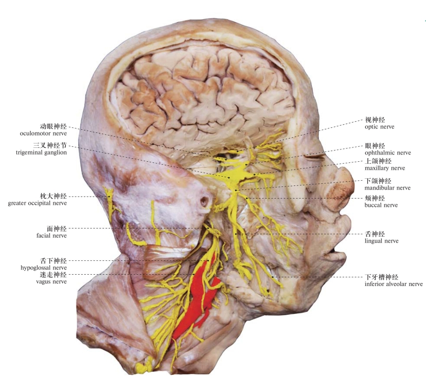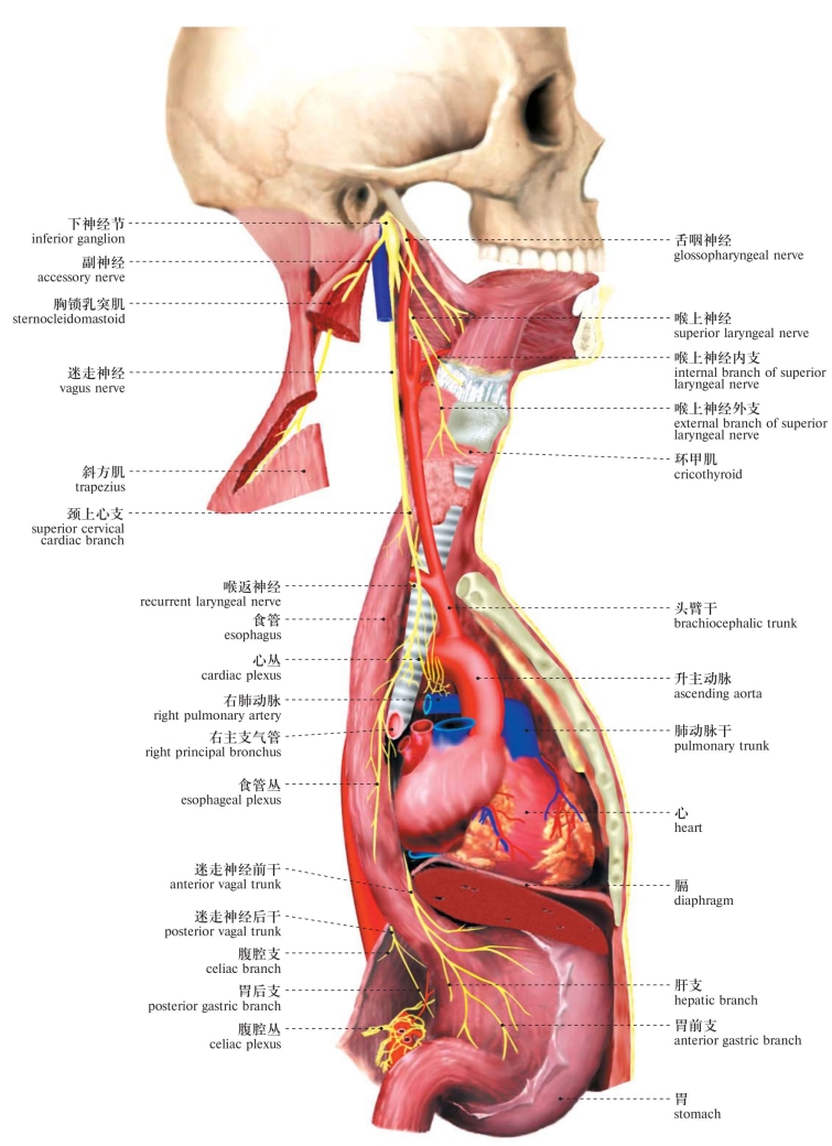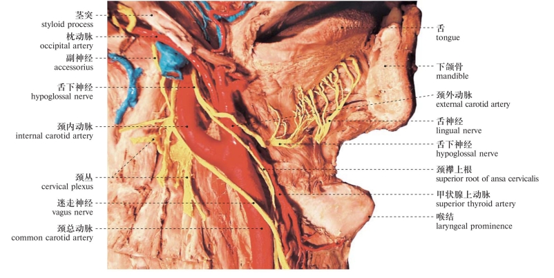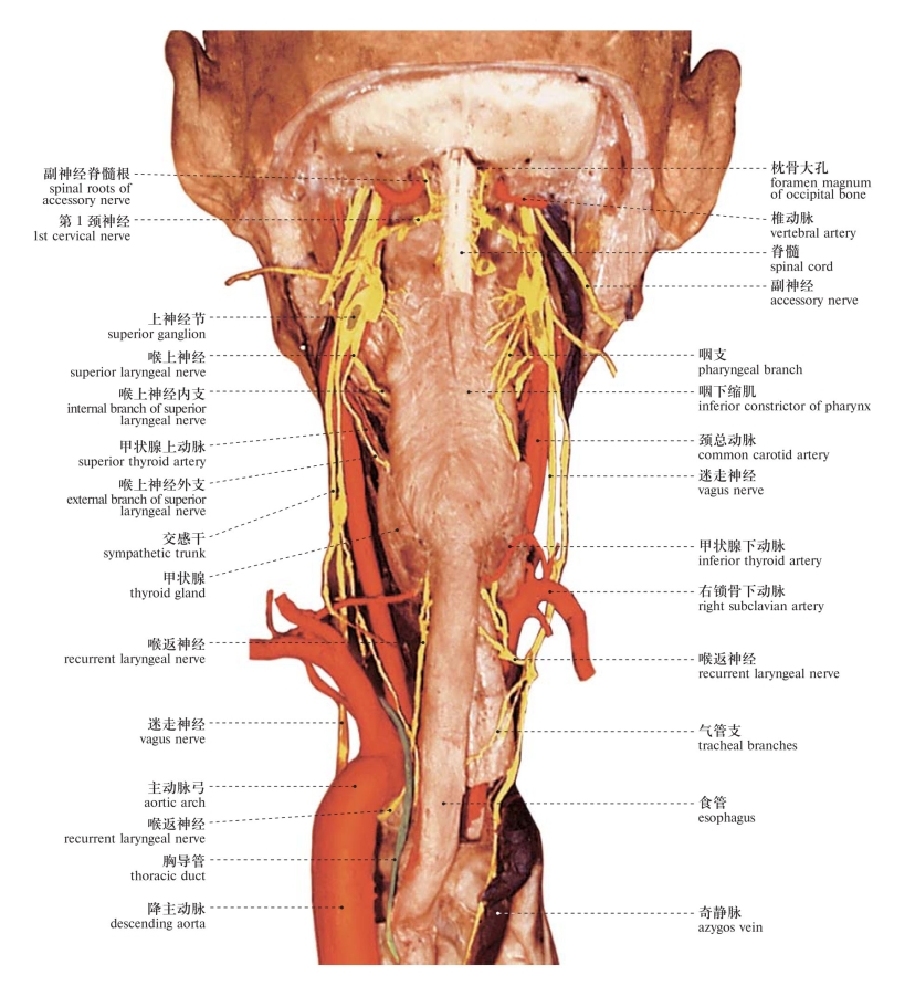 Course and the distribution of the glossopharyngeal, the vagus and the accessory nerves