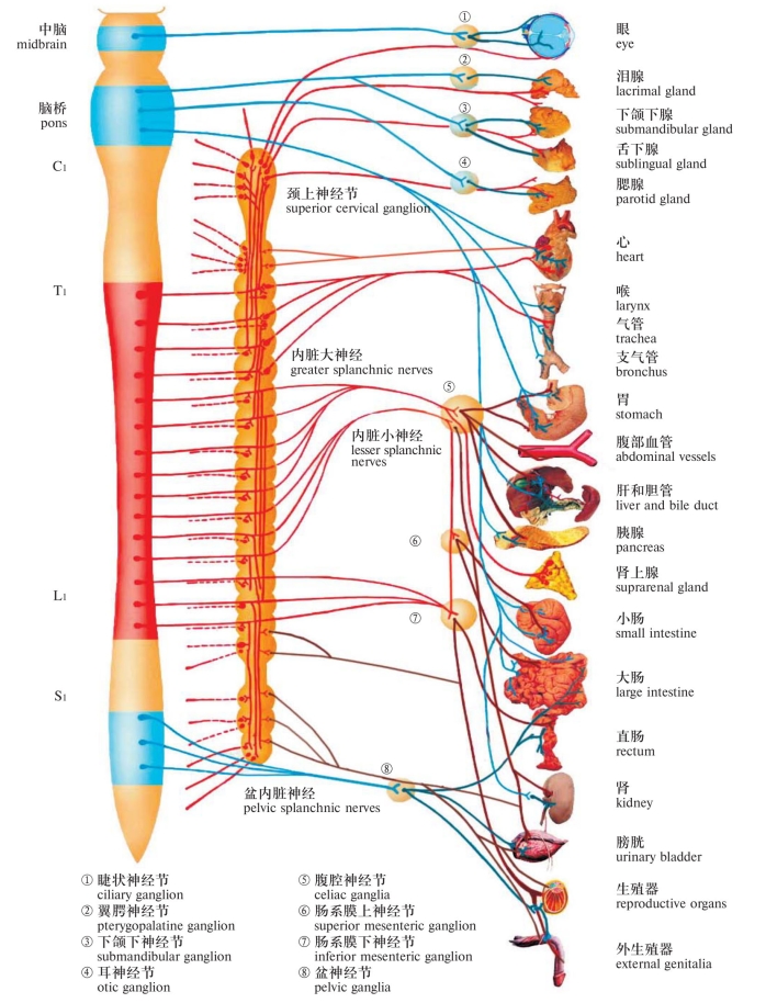 图548 内脏神经系统(模式图)Visceral nervous system (diagram)
