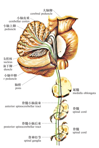 Pathway of the unconscious proprioceptive sensibility of the trunk and limbs