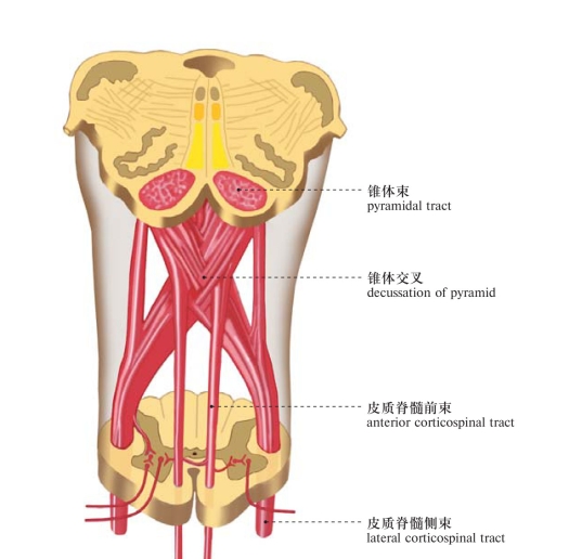 图562 锥体交叉(模式图)Pyramidal decussation (diagram)