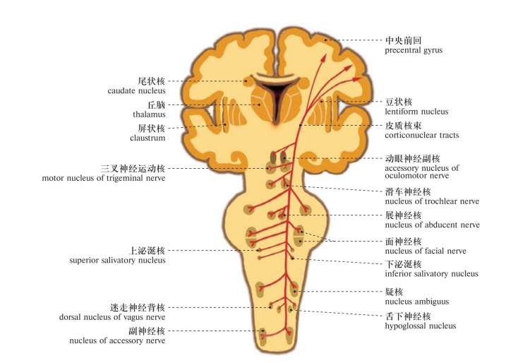 图561 脑神经运动核与皮质核束Motor nuclei of the cranial nerve and the corticonuclear tracts