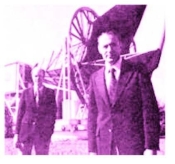 彭齐亚斯(左)和威耳逊(右),与他们背后的那架喇叭形天线