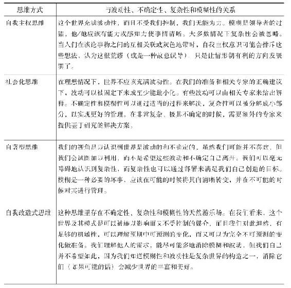表7.1 应对波动性、不确定性、复杂性和模糊性时的思维方式