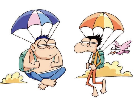 65.一个胖子和一个瘦子比赛跳伞,谁先到达地面?