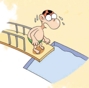 3.胖胖是个颇有名气的跳水运动员,可是有一天,他站在跳台上,却不敢往下跳,这是为什么?