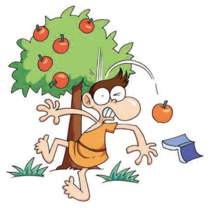 27.有一天,小董上完物理课后,突然想效法牛顿,就来到苹果树下。这时刚好掉下一颗苹果,砸到小董的头,你猜小董怎么说?