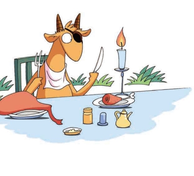 106.有一只瞎了左眼的山羊,左边放了一只鸡腿,右边放着一只羊腿,问:山羊会先吃什么?