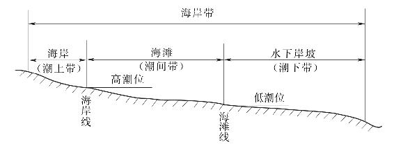 海滩又称潮间带,处于潮汐涨落的频繁作用之中,是平均低潮位到平均高潮位之间的地带。水下岸坡又称潮下带,是波浪作用开始处到平均低潮位之间的海底地带,波浪作用的下限水深在工程上一般取为波浪波长的一半。