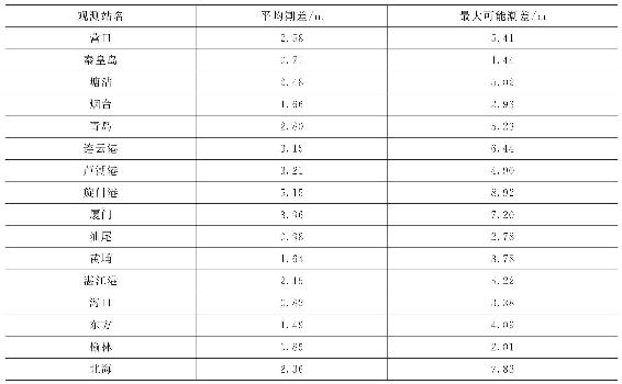 表3-2 我国沿海部分潮汐观测站的平均潮差和最大可能潮差[6]