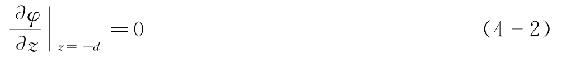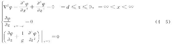 综上可知,常深度下二维线性波的速度势φ(x,z,t)由以下基本方程和边界条件所确定,即