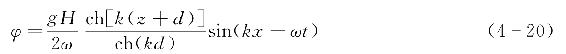 式中 x0、z0——波浪质点静止时水平与竖向位置坐标;