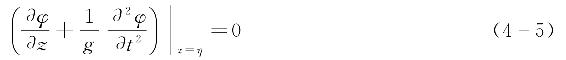 采用势函数和波面函数表示的自由表面动力边界条件为(g为重力加速度)