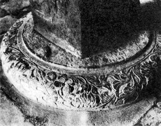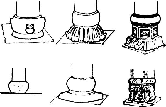 我们在形式精炼上的最后一个例子是柱础。柱础如同其他装饰性的部材,其发展是自粗陋而精致的。汉代石刻中的柱础,颇有近乎自然石块的例子,此与殷代发掘之漂石柱础,有相当近的关系,表示在我国早期上千年的历史中,仍保留着朴实的原始风。柱础形式的美化与层次化,大约在汉末,也许有西方的影响在内。佛教艺术东来,莲花的装饰开始在柱础上出现,而较细致的轮廓,已经从西亚自欧传来。(49)