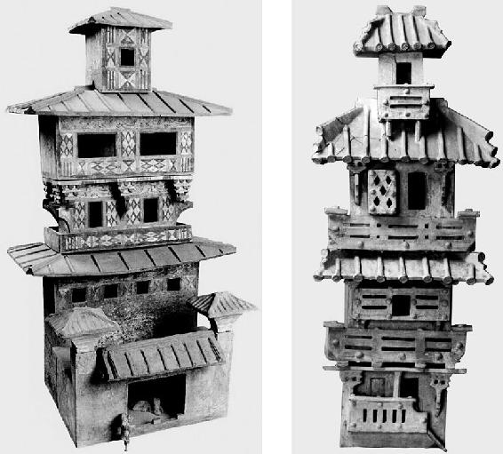 汉代明器望楼显示的四落水顶与斗栱