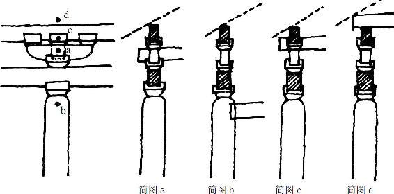 第三个可能性则为梁尖取代一斗三升中央一升的位置(简图c),这个假定在实物上没有任何证据,但可自汉阙石刻中看到这种做法。它的困难处是升身很小,作为次要支撑材还有可能,作为梁尖则极为勉强。