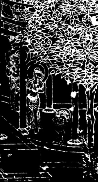 具体地说,我们的问题是这样的:这一个正心缝上的二度的图案与其结构的本身怎样连结在一起呢?我们知道结构的本身是矩形的框架,梁枋穿插在一起,然后经由柱子把上面的重量落到地上。我们知道斗栱至少在早期是一种构造的、装饰的部材,谈不上结构,但是这二度的正面怎样站立起来,支住屋顶的?更具体地思索这个问题,它的意思是:与结构内部的梁柱的连结点在哪里(36)?