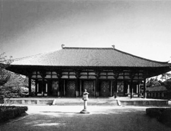 至于自六朝以后的例子看,也容易达到同样的结论。一般说来,日本飞鸟与奈良前期的建筑之出檐很大。试以法隆寺金堂之斗栱为例,可大体看出使用了昂,再加上六朝时代习用的大椽,其出檐,自柱面计算几乎等于柱高。而奈良时代的东大寺法华堂,使用了大椽及华栱一跳,其出檐约略等于柱高之一半。如以出檐深度与檐口高度计算,则前者大约相当,后者仅及三分之一。