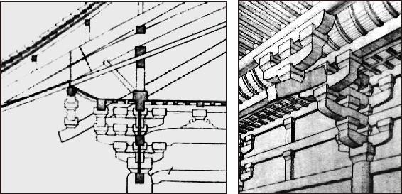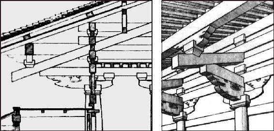 就笔者所接触的资料中,尚没有谈到昂与地域关系的讨论。但若没有这一点补充,华栱与昂的演递关系还是不能明朗化。这个问题的比较清楚的说法是:若把华栱之出挑当作两汉形式的复兴与系统化,而华栱又有多重、单重之分,何以有昂介入之必要呢?在上节中我们虽然提到昂与大出檐、急剧举折之关系,但以明清为例,出檐与举折似乎都在华栱所可达成的限度之内,然则以此而推断隋唐,很难说有发明一种特殊部材之必要。因此,我们要接受昂为必要之构件,必须找出产生昂之物理背景,亦即找到有大出檐、急剧举折的地理条件,故其结论必然归到某种特别的地域性风格的发扬与融合上。