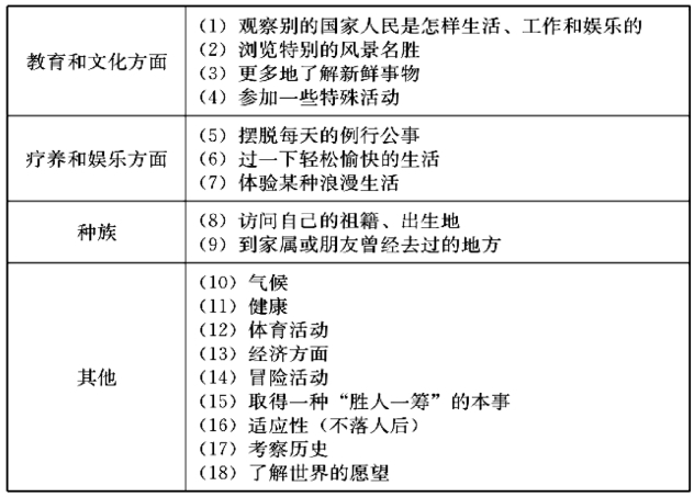 (一)旅游动机——实现个人旅游需求的主观条件