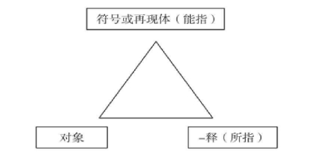 皮尔斯的符号学理论与索绪尔的理论稍有不同,皮尔斯认为符号是由符号或再现体、对象和解释构成的三元关系。符号或再现体即某种对某人来说在某一方面或以某种能力代表某一事物的东西。对象即符号形体所代表的那个“某一事物”。解释也称解释项,即符号使用者对符号形体所传达的关于符号对象的讯息,即意义。