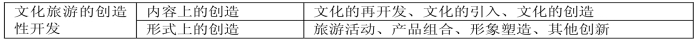 在前面对文化旅游创造性开发的定义阐述中,已讲到这种开发包括两个方面的创造,即内容上的创造和形式上的创造,在此可将其关系和分类用表5-2表示。
