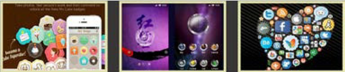 随着苹果系列产品销量的日益增大,苹果系列产品创意十足的Logo也被人们所关注。正是这个“被咬了一口”的苹果,经过数十年的发展,成为众所周知的国际品牌,并以越来越多的广告形式逐步设计出更多的APP造型。但自始至终,无论怎么设计延展,这个“被咬了一口”的苹果仍保持着它原有的基本造型。形形色色的苹果APP设计如图1.17所示。