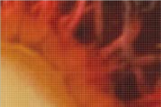 用放大工具将图片放大后,所见的图片就变成全是方格子的样子,而每个正方形格子,就是一个像素。如果有兴趣去数一下这些格子,就可以发现屏宽的格子数为380,屏高的格子数为260,即分辨率中的宽和高。