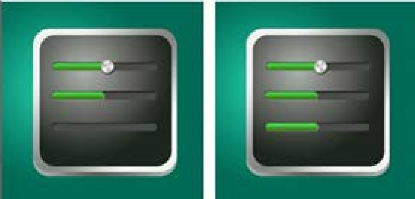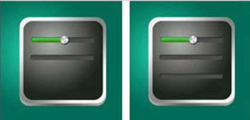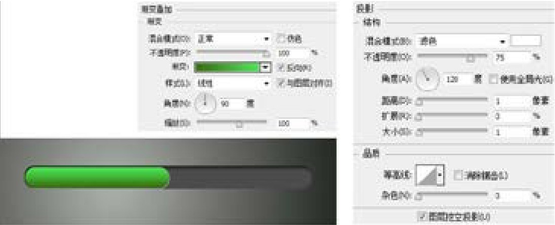 滑动条由3个部分组成:手指按住进行操作的滑块、已滑动的长度及滑动条的全长。在制作时注意滑动条的质感设计,充分运用图层样式及形状工具绘制具有真实质感的滑动条。