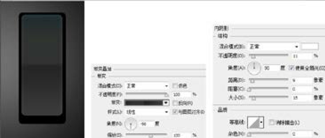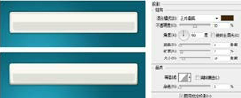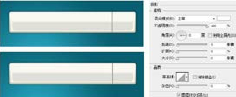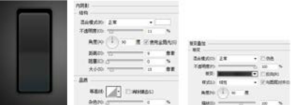 ⑨双击“圆角矩形1”,分别勾选“内阴影”“渐变叠加”选项并设置各项参数,完成后单击“确定”按钮(图3.92)。