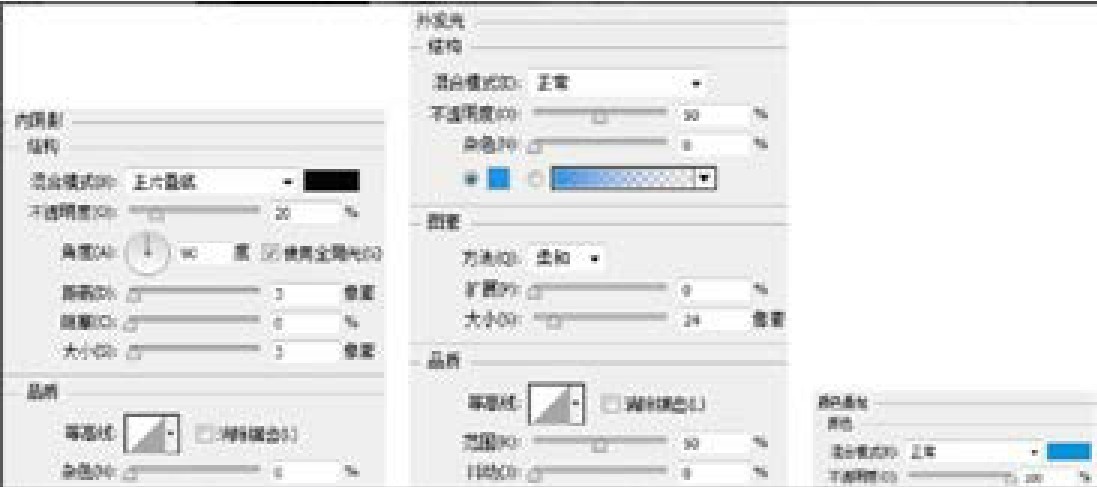 p复制文字图层,生成文字图层副本。双击该图层,分别勾选“内阴影”“外发光”“颜色叠加”选项并设置各项参数(图3.99)。