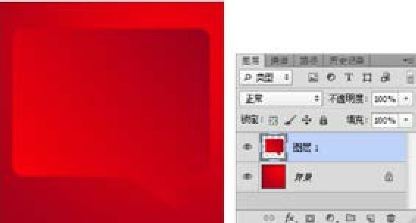 ④单击渐变工具,新建“图层1”,从右下至左上绘制“红色到暗红色”渐变,完成后取消选区(图3.129)。